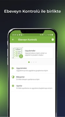 Ebeveyn Kontrolü, uygulamalarınıza ve Dr.Web ayarlarına erişimi yönetir.