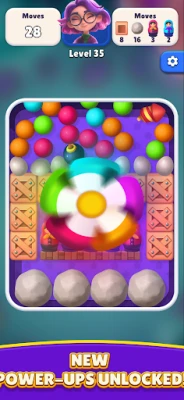 Complete level goals: remove wooden crates, stones, or match specific colors