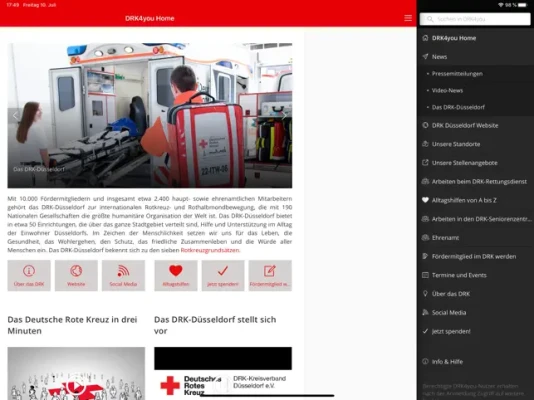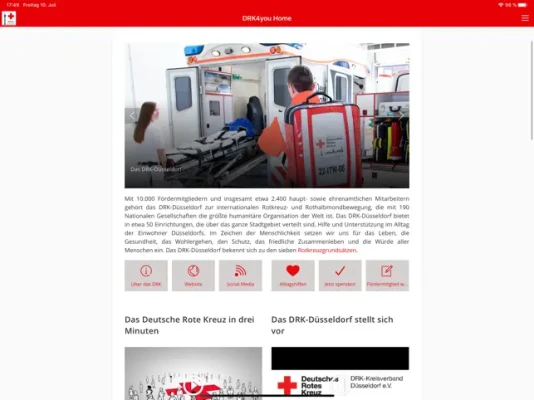 DRK4you ist die kostenlose App des DRK-Düsseldorf, mit der Sie sich immer und überall über die wichtigen Alltagshilfen, die Ihnen das Deutsche Rote Kreuz in der Landeshauptstadt bietet, informieren können. Seien Sie immer auf dem Laufenden, profitieren Sie als erster von wichtigen News, neuesten Videos, hilfreichen Links, Terminen & Events rund um Ihr DRK!