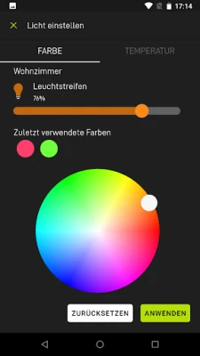 Passen Sie die aktuelle Helligkeit oder Farbe von Leuchten und die Position von Rollläden, Jalousien oder Markisen jederzeit ganz einfach an. Über einen langen Klick (3D-Touch) auf ein Szenario oder ein Gerät öffnen Sie die temporären Einstellungen und nehmen Sie schnelle Anpassung vor.