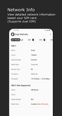 Get real-time insights into your SIM card's network connection with detailed information, including: