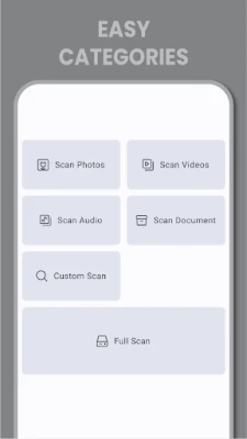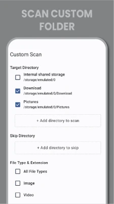 ❖ Tüm dosyaları tarayın veya fotoğraf, video, ses ve belgeleri seçerek tarayın.