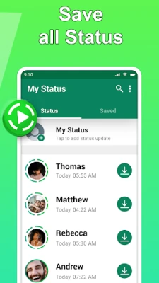 Status Saver, Görüntü Durumlarını, Video Durumlarını, GIF'leri, Metin Durumlarını ve Resim Durumlarını Hızlı, Hızlı ve Kolayca indirir.