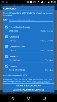 - Compound database with extensive data for more than 1200 compounds