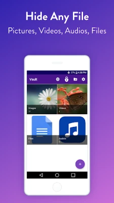 you can not only hide your pictures (photos) or videos , but you can also lock and hide any file that you want to keep private using a password.