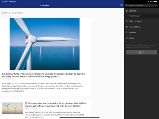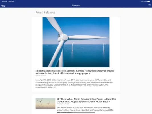This app keeps users informed on news about EDF Renewables North America. The app features push notifications, industry news and project images so you can stay connected anywhere, anytime.