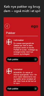 Spillet kræver kun én telefon eller tablet, så med EGO i inderlommen (eller den store brystlomme, hvis det er en tablet) kan 3-8 spillere få forrygende, overraskende og afslørende spil-oplevelser, hvis blot én af jer henter appen!