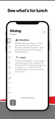 CAFETERIA MENUS Within the dining section, you’ll find an easy to navigate, weekly menu, sorted by day and meal type.