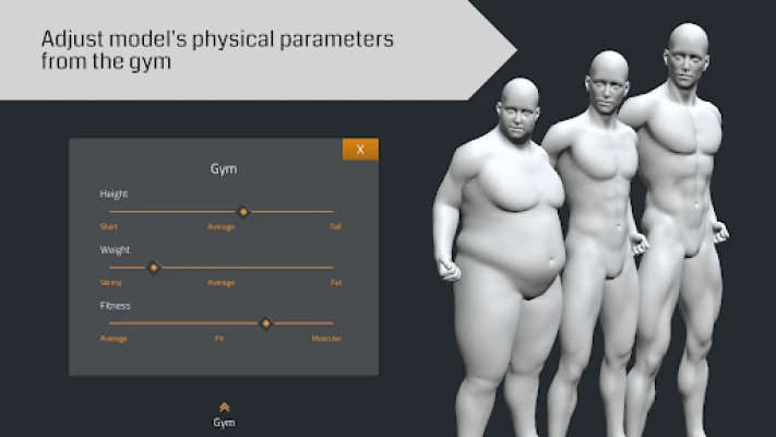 - Modelin fiziksel parametrelerini, yani boyunu, kilosunu ve kondisyonunu ayarlamak için spor salonu: Modelin vücudunu beğenmediniz mi? İsteğinize göre değiştirin!