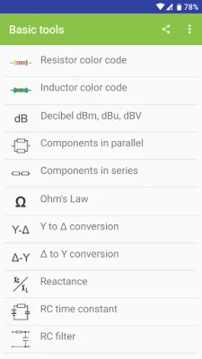 Bu uygulama, temel elektronik hesap makinelerinin bir koleksiyonudur. Hobi, elektronik mühendisleri veya profesyoneller için uygundur.
