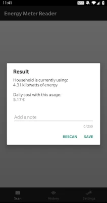 Want to know what is your household's electricity consumption at the moment? Energy Meter Reader application tells it. Electricity consumption is calculated from energy meter's blinking LED light, using your phone's camera. If you have set energy cost per kWh to settings, you also get daily cost of your household's electricity consumption. With Energy Meter Reader application you are able to compare how much electricity consumption changes when different electrical equipment / household lighting are on or off.