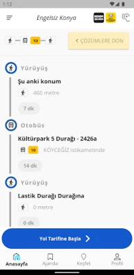 Vatandaşımızın mevcut konumu ve gitmek istediği konumu arasında toplu ulaşım kullanılarak oluşturulan alternatif rotalar gösterilmekte ve sesli ve görüntülü bir şekilde yolculuğa asistanlık yapmaktadır.
