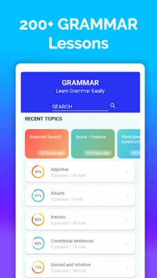 English Grammar app makes it easy to improve your English grammar and get ready for an English grammar test or just improve your writing and speaking quickly. With English Grammar app, you can study for FREE with 300 grammar lessons and 20000 tests (10000 with explanation). Best of all, you can access these features anywhere and anytime when you download our app.