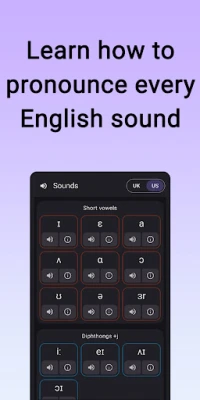 3. **Accent Focus**: Tailored for learners aspiring to adopt a Southern British accent, the app provides comprehensive guidance and resources specific to this dialect. From vowel nuances to intonation patterns, master the distinct charm of the Southern British accent with ease. You can also use this app to master Standard American and Australian pronunciations.
