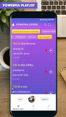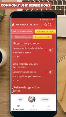 Uygulama, size günlük hayatta kullanılan binlerce yaygın cümleyi, her cümle için sesli olarak sağladı.