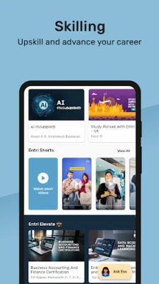 Entri Elevate offers upskilling programs in coding, commerce, digital marketing, teaching and technical domains.