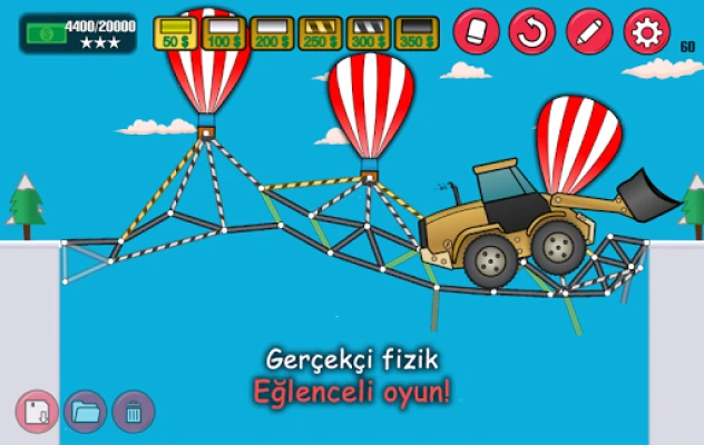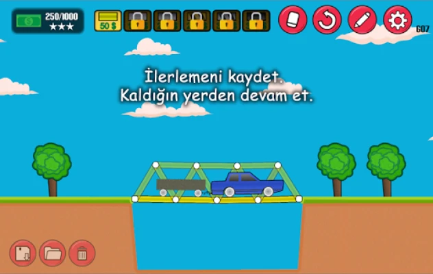 Zaman ayırın ve en iyi köprüyü inşa edin, farklı arabalara karşı test edin ve güçsüz olanları düzeltmek için zayıf noktaları bulun. Tüm sürecinizi kaydedebilir ve iyi bir zaman geçirmek istediğinizde devam edebilirsiniz. Ayrıca her seviyede 3 yıldız almak için benzersiz çözümler bulmanız gerekiyor.