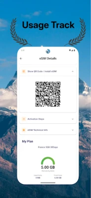 Follow the guided setup in the app to install your eSIM via QR code or automatic download.