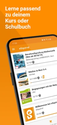 Du brauchst dein Schulbuch nicht dabei zu haben. Mit eSquirrel kannst du deine Hausaufgaben erledigen, indem du Aufgaben auf deinem Smartphone beantwortest.