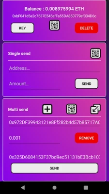 - Support of single sending and multi sending. - Send ether up to 10000 recipients. - QR Code address\key scanner. - Verified contract (https://etherscan.io/address/0x27b18450d7d875f579d69abafa64bb4254ff0c51)