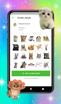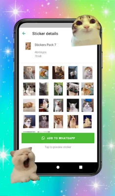 WhatsApp için kedi çıkartmaları, WAStickersApps için en iyi ve en güzel kedi çıkartmalarını gönderin ve arkadaşlarınıza sevimli kedi çıkartmaları göndererek eğlenin.