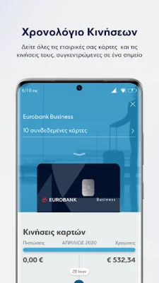 Συγκεντρωτική απεικόνιση καρτών: Πληροφόρηση και διαχείριση των business χρεωστικών καρτών, και των business πιστωτικών καρτών που έχουν εκδοθεί για την εταιρεία σας.