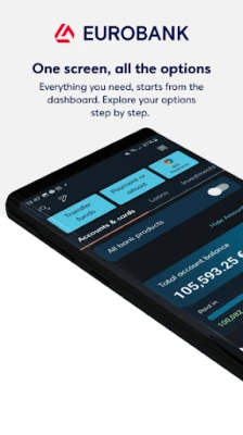 All your options in one screen: You will find everything you need on dashboard, including all your accounts’ balance, current month’s income and expenses, details for each of your accounts and cards separately, and the €pistrofi amount you have earned through purchases with Eurobank cards.