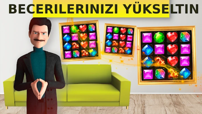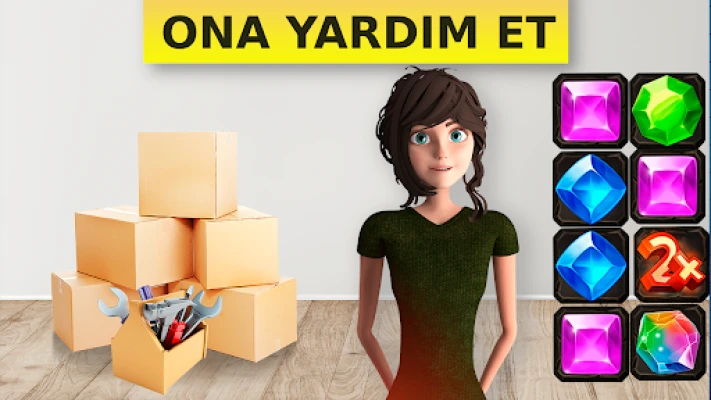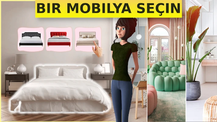 Halı deseni, lamba şekli, sandalye ve masa stili.....Her şey size kalmış! Hayalinizdeki ev tasarım fikirlerini kolayca uygulayabilir, en sevdiğiniz ev dekorasyonu makyajını seçebilirsiniz - evinizi kendi tasarımınızı oluşturmak için ilginç mobilyalar, döşemeler ve duvar kağıtları satın alabilirsiniz. Yemyeşil bir sokakta harika bir konağı yeniden dekore etmek için 3'lü eşleştirme bulmacalarını çözün. Heyecan verici maceralar kapıda başlar!
