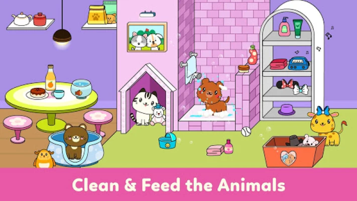 Sevimli aslanlardan kabarık ayılara kadar her sevimli hayvanı bu uygulamada bulacaksınız🐻. Evcil hayvanınızda farklı roller oynuyormuş gibi yapabilir ve bu muhteşem karakterlerle oynayabilir ve Tizi Pet Kreş'in her köşesini keşfedebilirsiniz. Kendi hikayenizi oluşturmanız için bu evcil hayvan oyununda birçok etkileşimli sahne var.