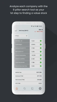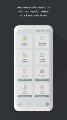 The Everything Money Software allows you to Analyze each company with our fundamental stock analysis tools. We have U.S. based and foreign stocks to analyze with stock prices updated every 15 minutes. Research deep into a companies financials, cash flows statements, news, and annual 10k reports. Start your research with the 8 pillar search tool as your 1st step to finding a value stock. Use the stock analyzer tool to find the target price for a stock based off your assumptions. You can even Build your own 8 pillar portfolio! Also, Plan for retirement and find out how much you need to invest to reach your retirement goals! Coming Soon we will have our Real estate Calculator, momentum trading, and day trading chart views.