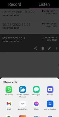- Kayıtları Facebook, WhatsApp ve daha fazlası aracılığıyla paylaşmak için paylaşma seçenekleri