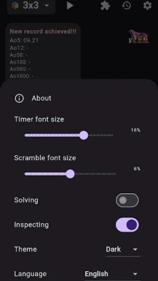 Enjoy a complete experience with WCA-compliant scramble algorithms, support for 13 languages, theme customization, solve history, and detailed statistics.