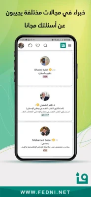 عندك سؤال محيرك؟ عندك مشكلة؟ محتاج استشارة؟ فدني مجتمع يساعدك في حل مشاكلك والإجابة عن أسئلتك فدني منصة اجتماعية تتيح للجميع طرح أسئلتهم ومشاكلهم والإجابة عن أسئلة ومشاكل الآخرين.تتميز فدني بمزايا فريدة مثل خاصية السؤال بالصوت وإخفاء الهوية ووجود عدد من المختصين الذين يسرهم مساعدتكاطرح سؤالك أو مشكلتك واستقبل إشعارا على هاتفك حين يتم الرد عليه مجاناسجل نفسك كمختص في مجالك وأجب عن أسئلة الآخرين وقم بالدعاية لنفسك في ذات الوقتيمكنك ربط حسابك في فدني بحساباتك في السوشيال ميديا أو موقعك الشخصي