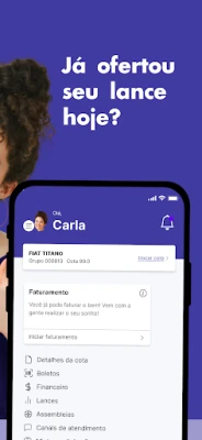Você pode ofertar lances, conferir as datas e os resultados das assembleias, emitir segunda via de boleto e localizar qual a filial mais perto de você.