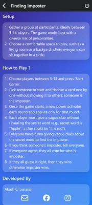 10. In case of 2+ imposters, don't reveal identity after voting; game continues until 2 players remain: 1 imposter = imposter wins; both innocent = innocents win.