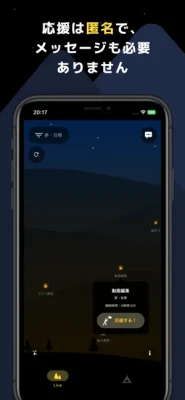 ・匿名の応援機能...ユーザー同士で応援し合える機能があり、応援を受けると炎が大きくなり、更なるモチベーションアップに繋がります。
