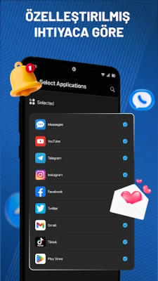 - Favori uygulamanız için LED fener itme bildirimlerini kolayca özelleştirin.