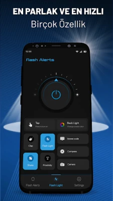 Müzik Strobu & Flashbeats: Şarkılarınızı müziğinizle senkronize olarak ritmik fener yanıp sönmesiyle geliştirin, görsel bir ritim deneyimi sunar.