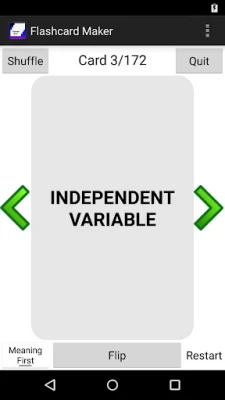 Flashcard Maker is a simple and easy-to-use application that assists studying and memorization of terms. This application allows for the manual creation of unlimited sets of flashcards within your device AND importation of existing flashcard sets from Quizlet! Have any doubts about how well you've mastered a deck? Try one of the three excellent quiz modes! Stronger preparation for courses is guaranteed with this application. The application's features allow for maximum studying efficiency with minimal time investment. Application features include: