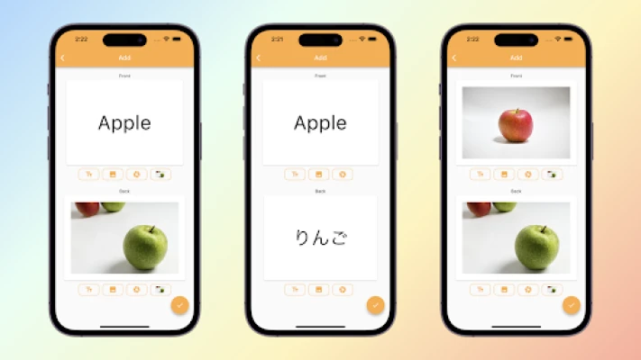 Flick Flashcard Metin, Görüntü ve Sesi destekler.