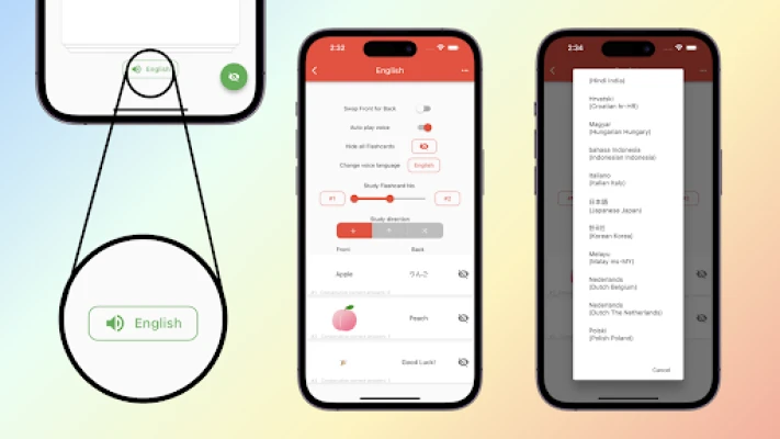 Flick Flashcard 35'ten fazla dili destekler. (cihaz bağımlılığı)
