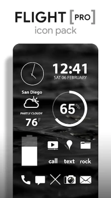 Flight (pro version) is a simple and minimalist icon pack with clean flat white icons, matching wallpapers and includes clock, battery, and weather widgets. Flight features transparency in the icons to blend in well with your backgrounds. Widgets offer color, size, and font customization and hand-picked wallpapers of skies, clouds & landscapes are included.