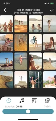 Filter each image, add special effects, text, emojis and more! Easily select images from your photo library, add music and special effects, edit slideshow length and share directly to social media or the camera roll!