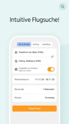 Nach der Auswahl des gewünschten Flugs werden Ihnen alle wichtigen Details (z.B. Preise, Flughäfen, Flugplan, Flugdauer, Datum etc.) übersichtlich angezeigt. Nun können Sie problemlos Ihren günstigen Flug direkt über Ihr Smartphone buchen.