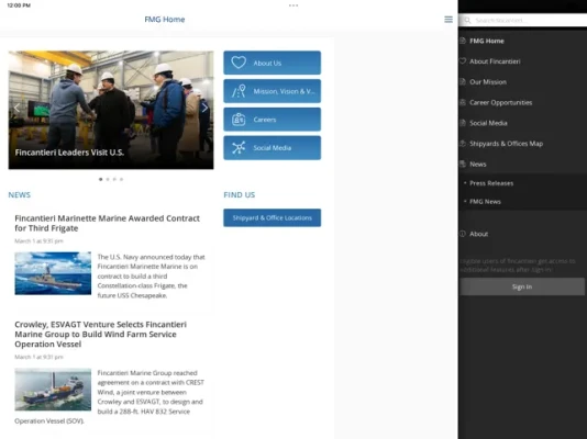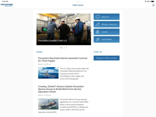 This app is an all-in-one resource to communicate key pieces of company information, announcements, benefits and provides quick access to social media channels, careers & other company resources to Fincantieri Marine Group.