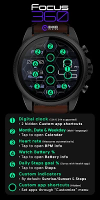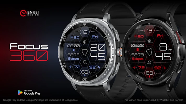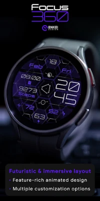 Focus 360 is a unique modern, digital & animated design for Wear OS, inspired by a video game interface!
