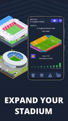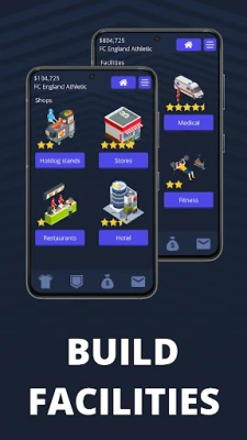 ⚽ Club Infrastructure: Beyond just managing a team, you'll oversee the development of your club's facilities. From expanding the football stadium to building hotdog stands and merchandise shops, every element adds to the ambiance of match day and the coffers of your club.
