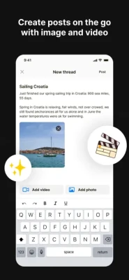 Fora Communities supports posting images and videos, fast switching between communities, new profile creation, and push notifications.