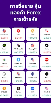 มีส่วนที่เป็นที่นิยมในตลาดที่ครอบคลุม การตั้งค่าเพื่อจัดการสถานะได้อย่างยืดหยุ่นและการวิเคราะห์แผนภูมิอย่างเป็นมืออาชีพ สัมผัสกับการเทรดที่ราบรื่นและไร้ที่ติที่สุดบนแพลตฟอร์มการเทรดของเรา