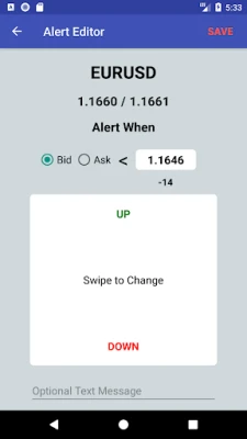 A Forex trading tool that generates alert notifications (alarms) when a pre-defined price level is reached. Also supports Cryptocurrencies and Indices.